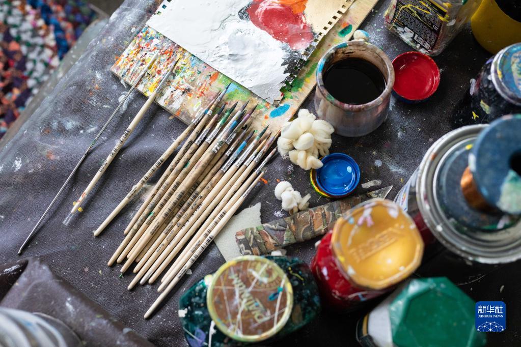 這是6月7日在俄羅斯圖拉拍攝的用于繪制巴揚手風(fēng)琴琴身圖案的工具。