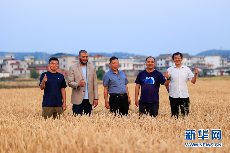 艾哈邁德·埃爾法納(左二)和中國專(zhuān)家在麥田里合影。新華網(wǎng) 趙普凡 攝