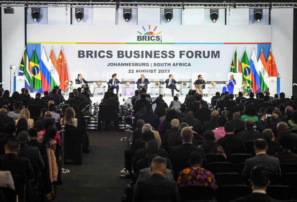 這是8月22日在南非約翰內斯堡拍攝的金磚國家工商論壇現場(chǎng)。