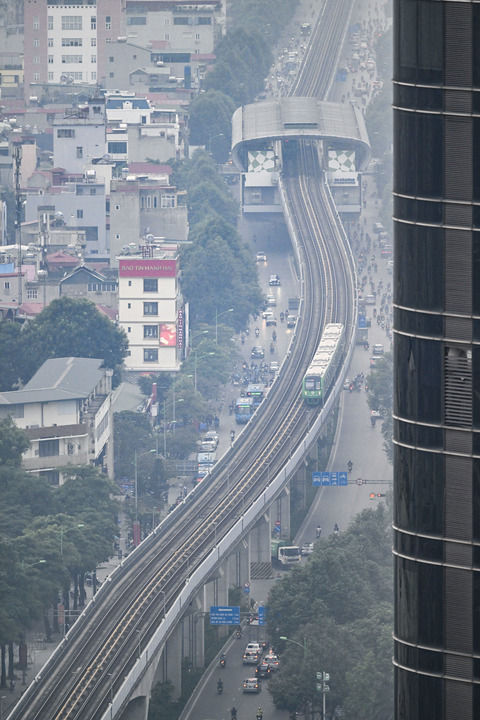 2023年12月9日,列車(chē)在越南河內吉靈-河東輕軌線(xiàn)上行駛。河內吉靈-河東線(xiàn)輕軌由中國中鐵六局集團有限公司承建,是中越兩國共建“一帶一路”的標志性項目。新華社記者 程一恒 攝